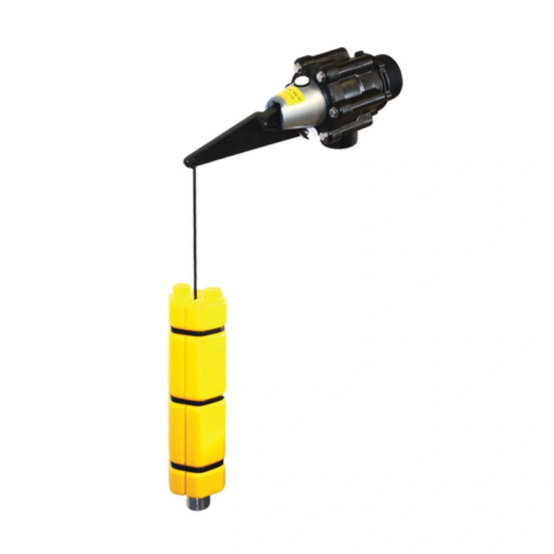 • As the tank empties te weighted float travels down the cord and sits on the bottom stop to activate the valve.