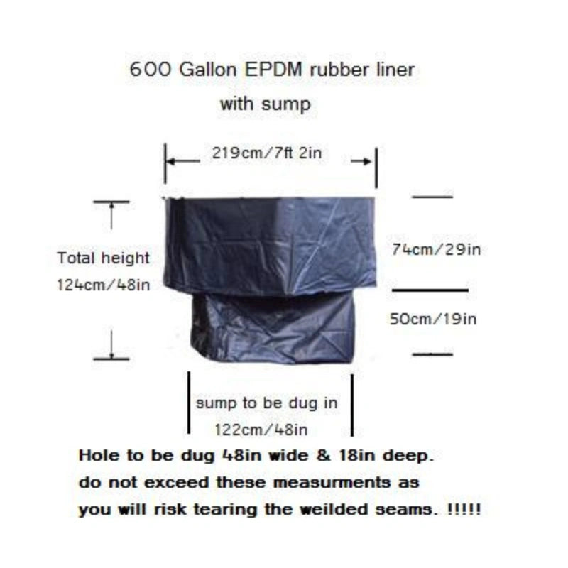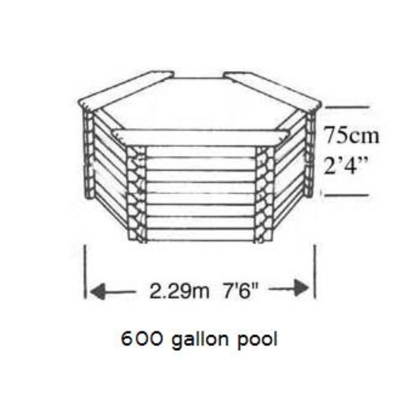 The 600 gallon pool has 3 seats and a fitted EPDM rubber liner with sump. (no pump)