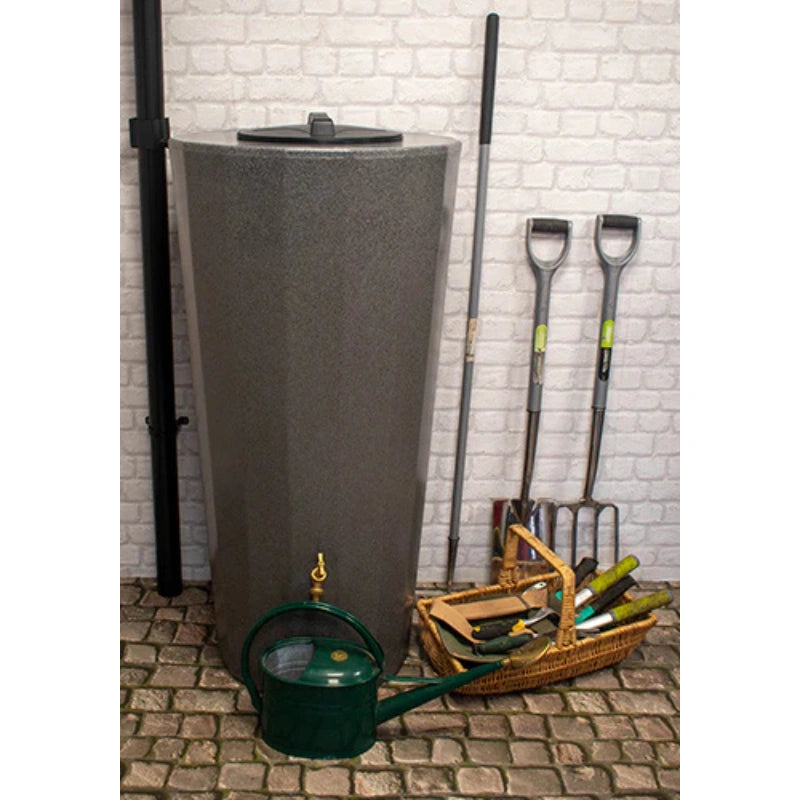 The Metropolitan Just Water - water butt the latest addition to this exceptionally popular Ecosure range. The Metropolitan's large water reservoir will collect lots of precious rainwater for your plants. Manufactured from virgin, fully recyclable polymer, it is completely frost-proof - and the latest UV stabilisation technology means the colour does not fade. Brass inserts are pre-moulded into the tank, making the fitting of your free tap and drain valve easy. All you need to do is position the Metro on a solid base, fit the free rainwater diverter and you are ready to go.