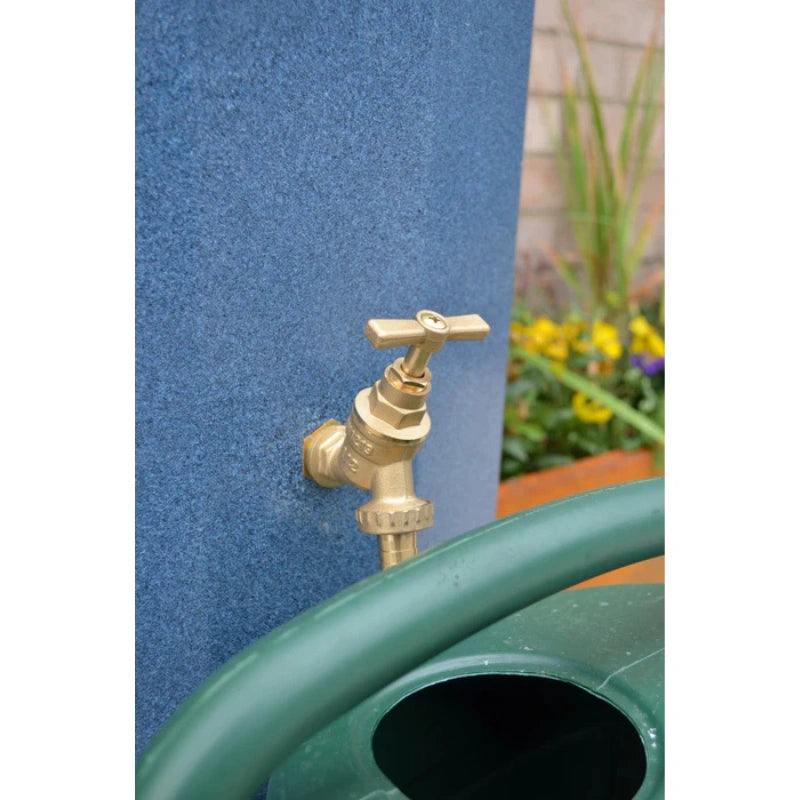 Located on the front of the water butt planter is a raised ¾'' brass out - ideal for attaching a garden tap and just the right height for your watering can. At the back there is a lower outlet which can be used to drain the water butt completely.