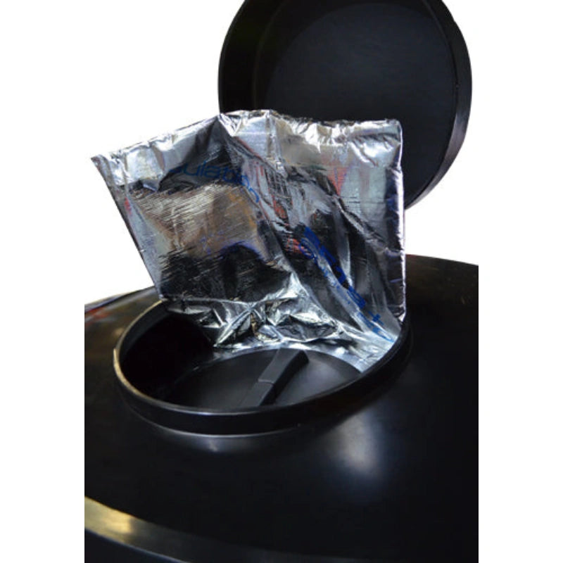 A cylindrical insulated water tank that holds a capacity of 1500 litres. The insulation inside the water tank prevents the water from freezing up during low temperatures.