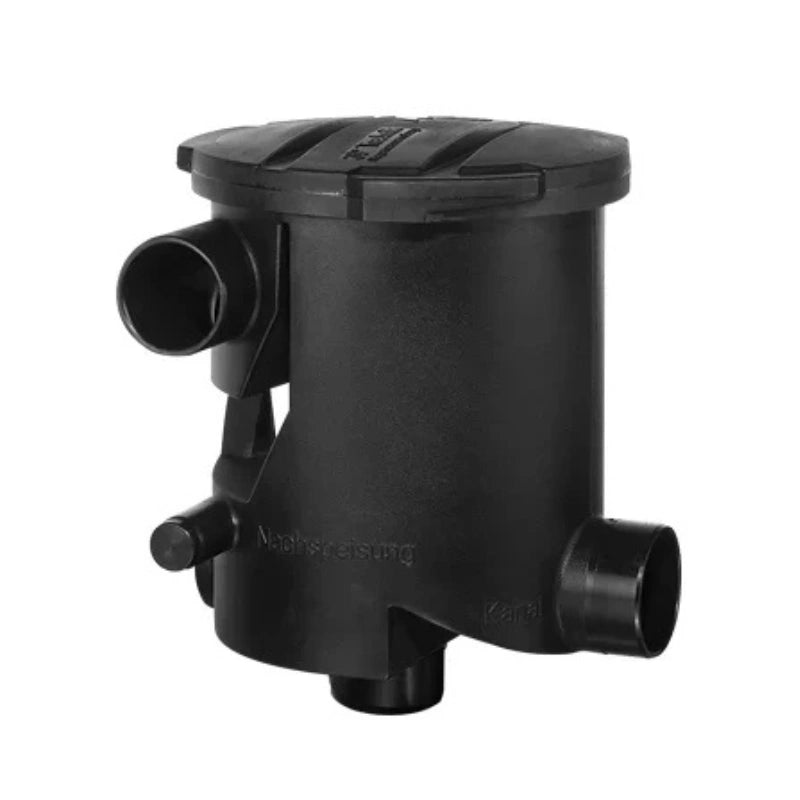 The VF1 Combi is suitable for roof areas up to 450m2 and can be installed inside or above the tank. Clean water is directed out of the bottom of the filter, making installation easy. Dirt and debris are washed sideways and can be directed to a soakaway or sewer using 110mm pipe. The Twin Filter is suitable for larger roof areas up to 800m². Due to its two step cleaning system, it has a high level of filtering efficiency, independent of flow rate. The steep inclination of the filter cartridge means dirt is continuously cleaned away into the sewer.