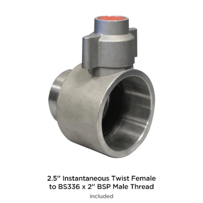 • 1 x 2.5'' inst twist female x 2'' BSP male thread